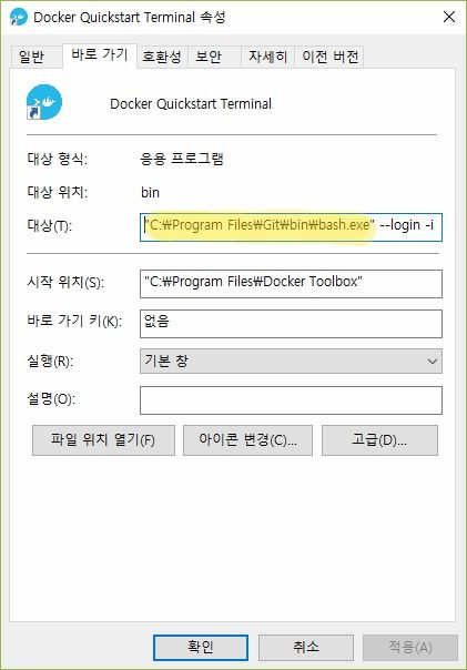 Docker Quickstart Terminal을 실행할 때